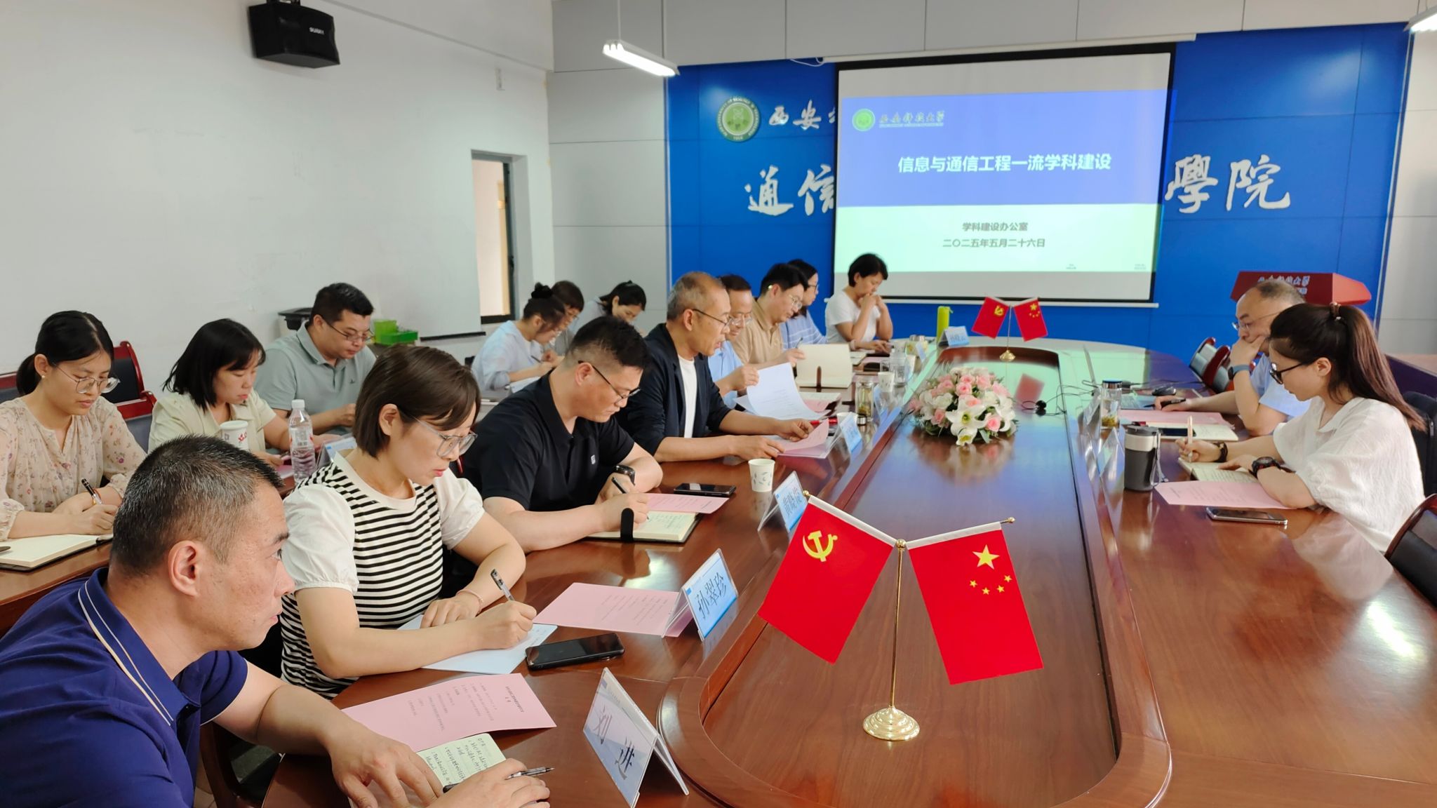 5月26日下午,发展规划与学科建设处赴通信学院调研,就推进信息与通信工程一流学科建设进行深入交流。通信学院党政领导班子、学科带头人、学术方向带头人、学科秘书及各系主任、支部书记参加会议,会议由通信学院院长主持。